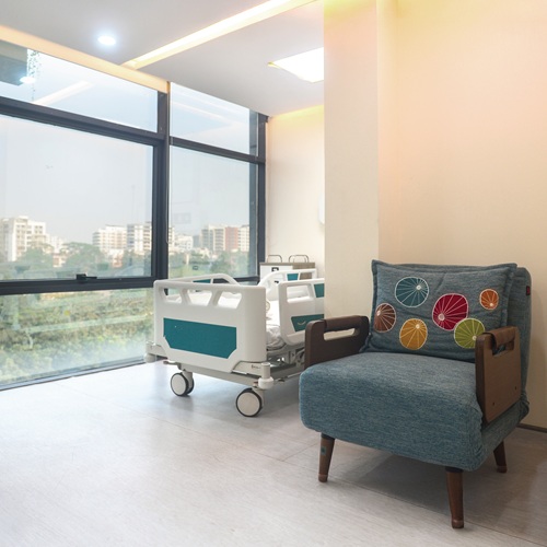 Our POD is a well-organized 118 sft semi-private treatment space designed for efficient care and continuous monitoring. The layout ensures cleanliness, comfort, and quick access to nursing support, while maintaining essential patient privacy within a shared setting. It offers a calm and structured environment ideal for short stays, treatments, or patients who require attentive care without the need for a fully private room.